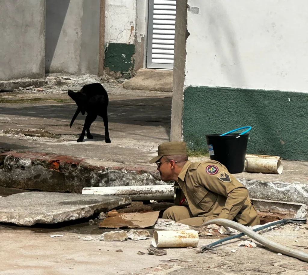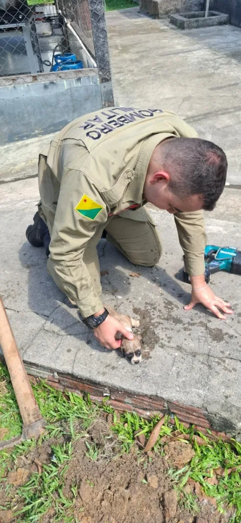 Corpo de Bombeiros resgata filhote de cachorro preso em tubulação; resgates de animais crescem no Vale do Juruá