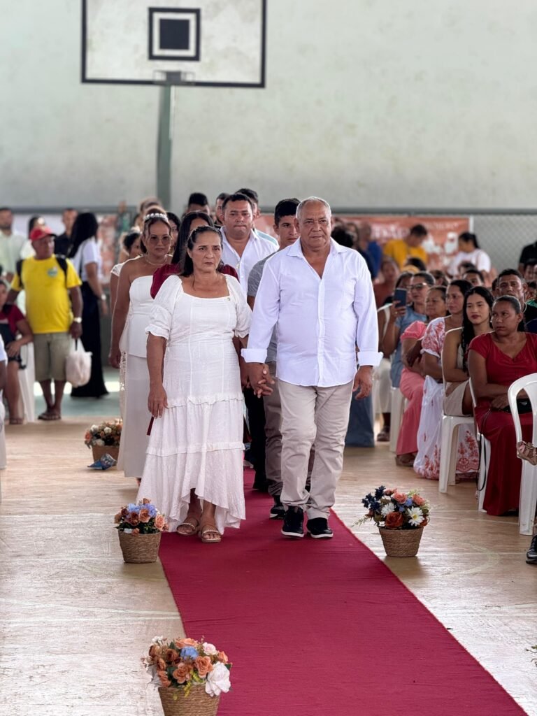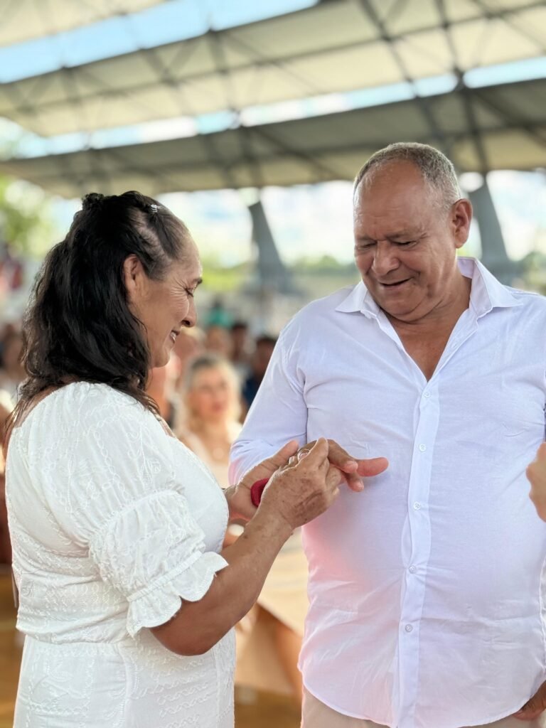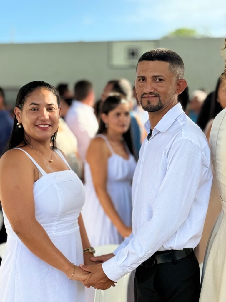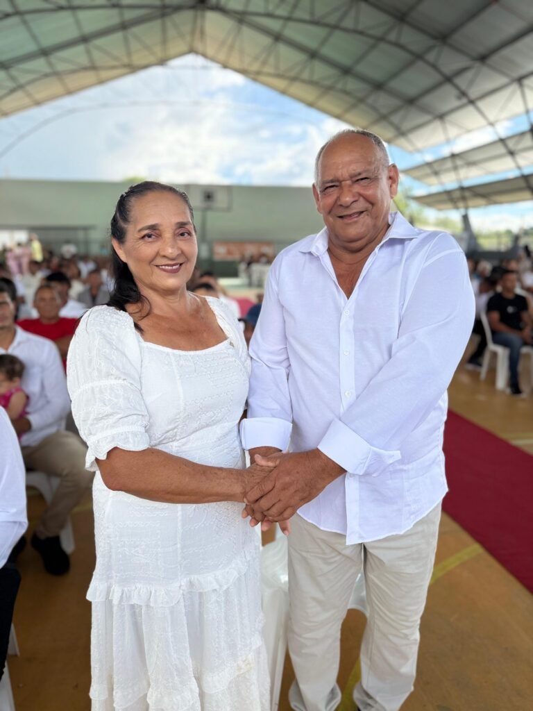 Seu Valderli dos Santos Furtado, 70 anos, e dona Maria Zenaide do Nascimento, de 63, que são os pais do prefeito Valdélio Furtado, formalizaram a união civil após 40 anos, durante o Casamento Coletivo, que é uma das atividades do Projeto Cidadão. Além do “sim”, o casal compartilhou a satisfação de vivenciar uma história marcada por companheirismo, superação e conquistas.