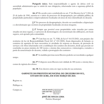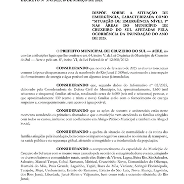 Prefeito Zequinha Lima Decreta Situação de Emergência em Cruzeiro do Sul devido à cheia do rio Juruá