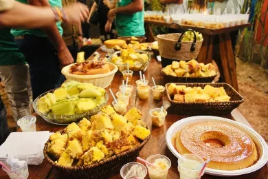 Nesta edição, feirantes e agricultores comercializam dezenas de pratos típicos à base de milho, como pamonha, bolo, mingau, torta de milho, pudim de milho e canjica, além de receitas inovadoras que unem tradição e criatividade.