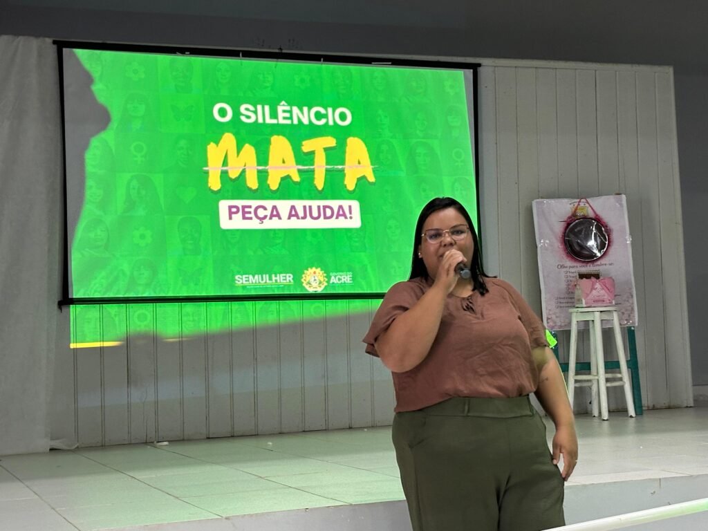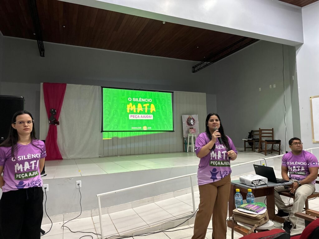Dando continuidade às ações, foi realizada a palestra com a equipe da SEMULHER, com o tema “O Silêncio Mata”, abordando a importância de romper o silêncio diante de situações de violência, denunciar abusos e buscar apoio.