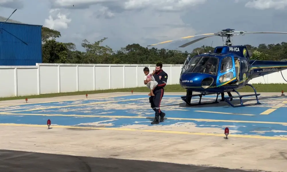 A viagem que levaria 9 horas de ida de barco, até a comunidade Cachoeiro do Açaí, foi feita em 22 minutos de voo no helicóptero. O menino foi trazido para o Hospital do Juruá.
