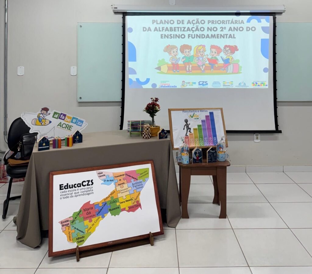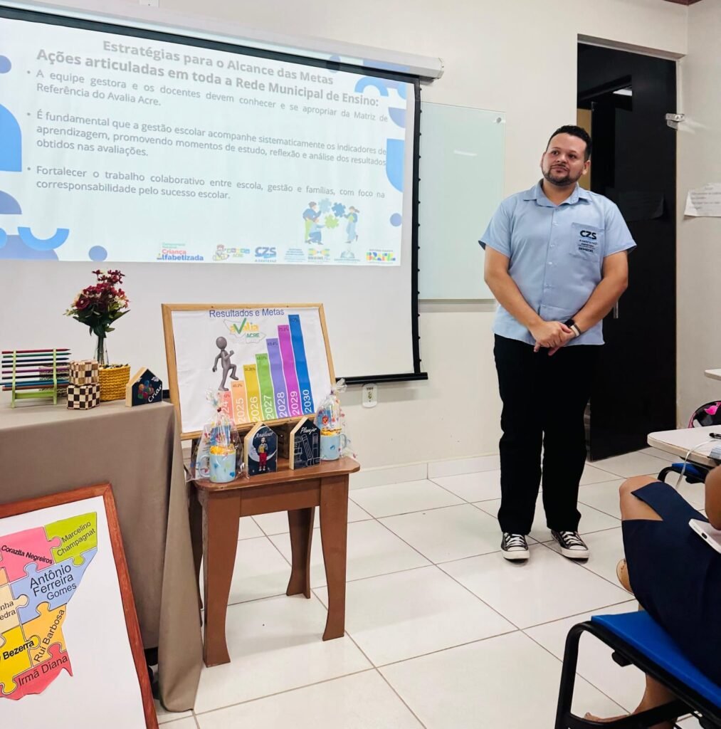 “Tem sido marca da gestão do prefeito Zequinha Lima e da secretária Rosa Lebre o trabalho voltado à oferta do ensino de qualidade às nossas crianças, e o plano de alfabetização, que reúne esforços da secretaria, equipes gestoras e comunidade, coroa um trabalho primoroso, que fará toda diferença na vida dos estudantes”. O trecho proferido pelo assessor pedagógico Alisson Lima, na manhã desta quarta-feira, 22, durante encontro com gestores e coordenadores da rede municipal de ensino, em Cruzeiro do Sul, faz referência à política da gestão municipal, por meio da Secretaria de Educação, Esporte e Lazer (SEMEEL), que criou o Plano de Ação Emergencial de Alfabetização de Alunos do 2º ano do Ensino Fundamental I.