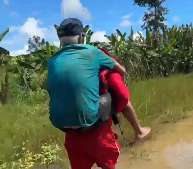 Senhor João foi encontrado caído em caminho alagado na comunidade Olivence, apresentava desidratação e dificuldade de locomoção Na manhã desta